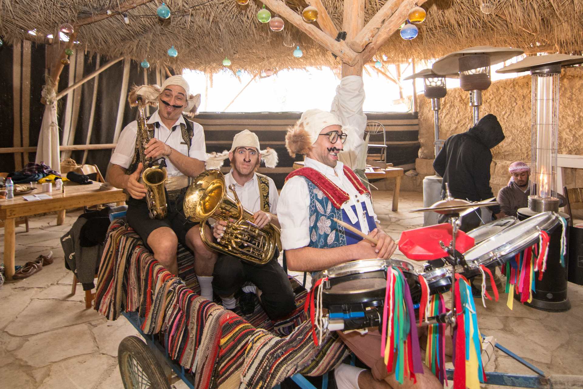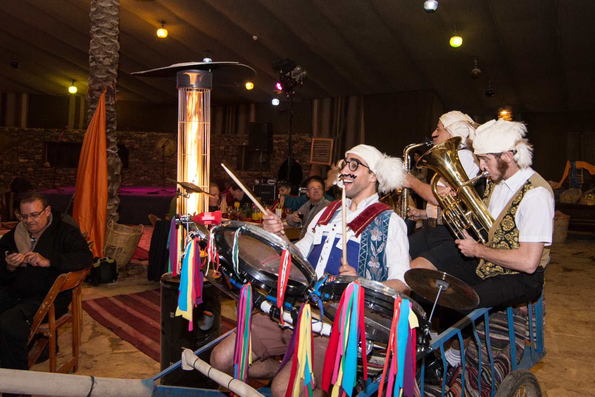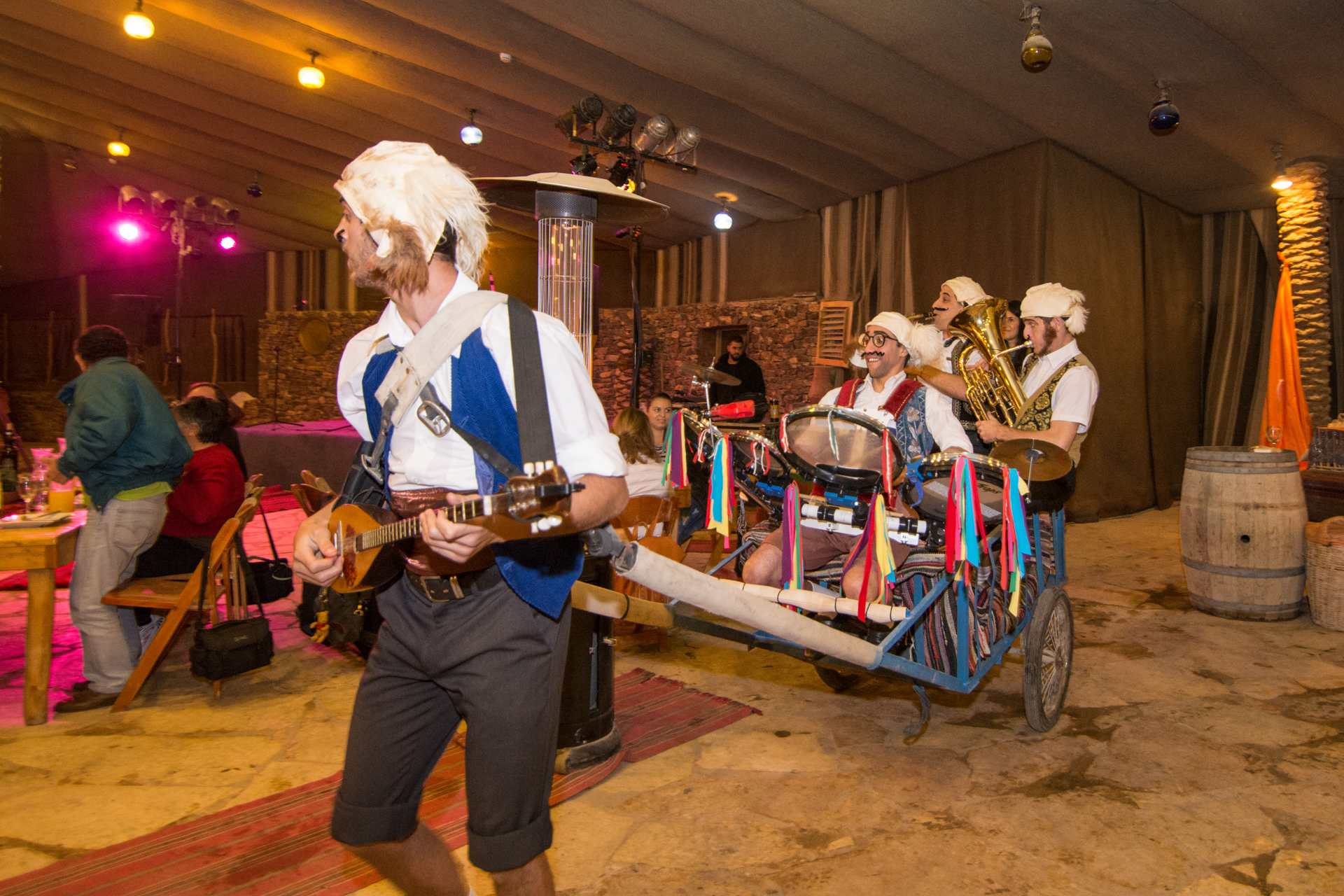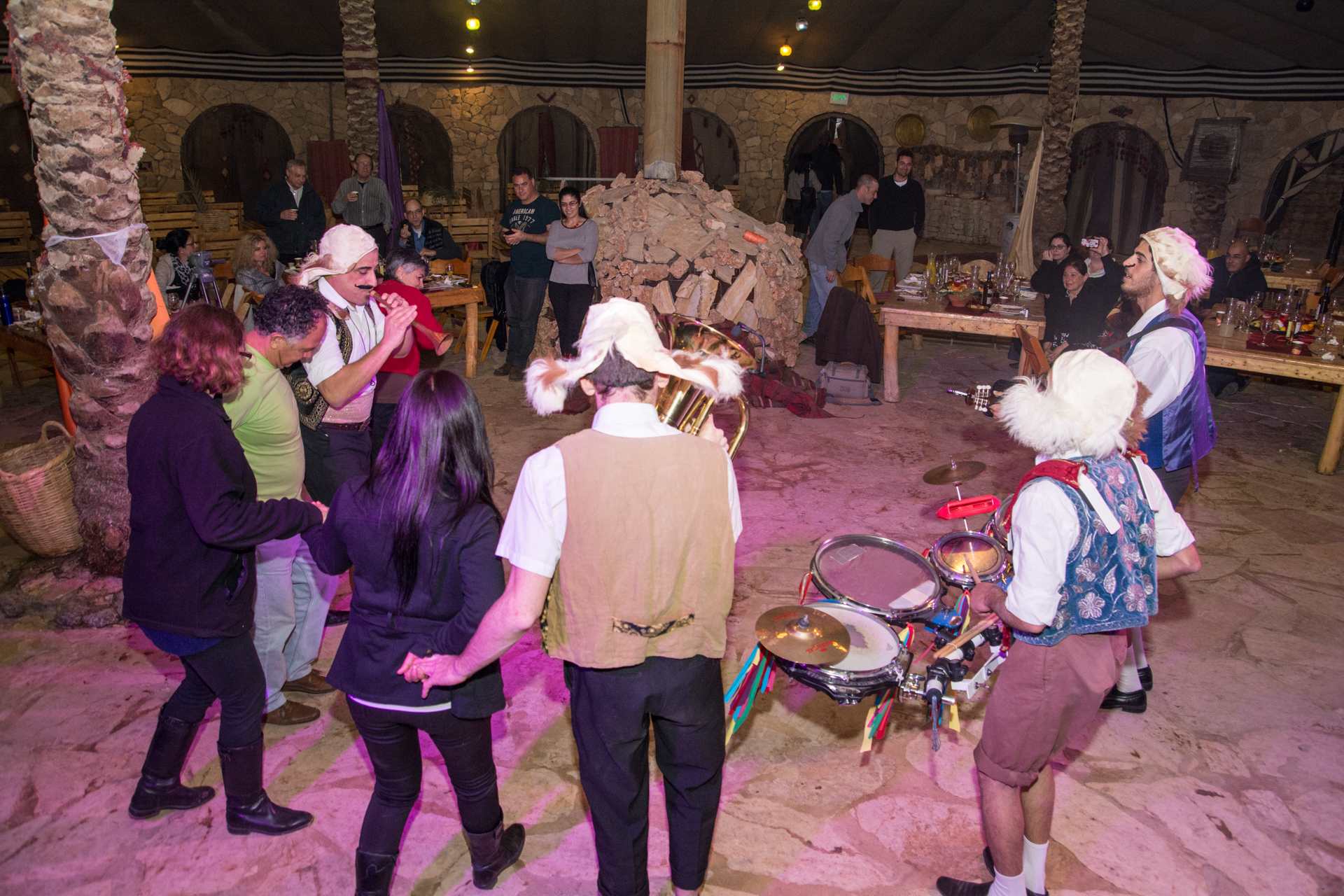– לאורך הארוחה עולים ומופיעים נגנים ושחקני תאטרון וקרקס